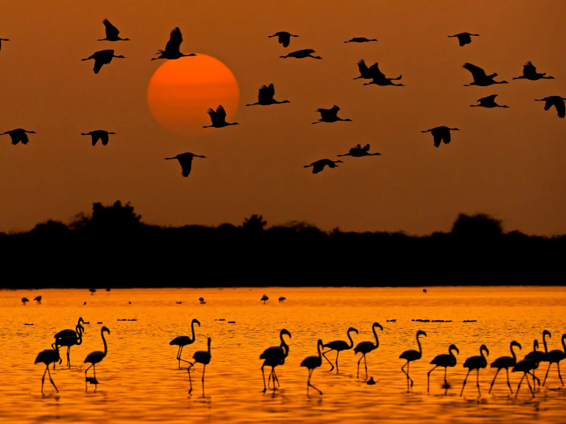 Nalsarovar Bird Sanctuary, located around 60 km from Ahmedabad in Gujarat, is one of India?s largest wetland bird sanctuaries and a must-visit destination for nature lovers, birdwatchers, and wildlife photographers. Spread across nearly 120 square kilometers, this beautiful shallow lake ecosystem attracts more than 250 species of migratory and resident birds every year. During the winter months from November to February, thousands of migratory birds arrive from Siberia, Central Asia, and Europe, turning the sanctuary into a vibrant natural paradise. Visitors can enjoy early morning boat rides across the calm waters while spotting flamingos, pelicans, cranes, herons, egrets, and a wide variety of ducks resting on small islands locally called ?bets.? The peaceful sunrise views, rich biodiversity, and serene landscape make Nalsarovar a perfect escape from city life. Easily accessible from Ahmedabad, the sanctuary is one of the most popular eco-tourism attractions in Gujarat and an ideal destination for day trips, birdwatching tours, nature photography.