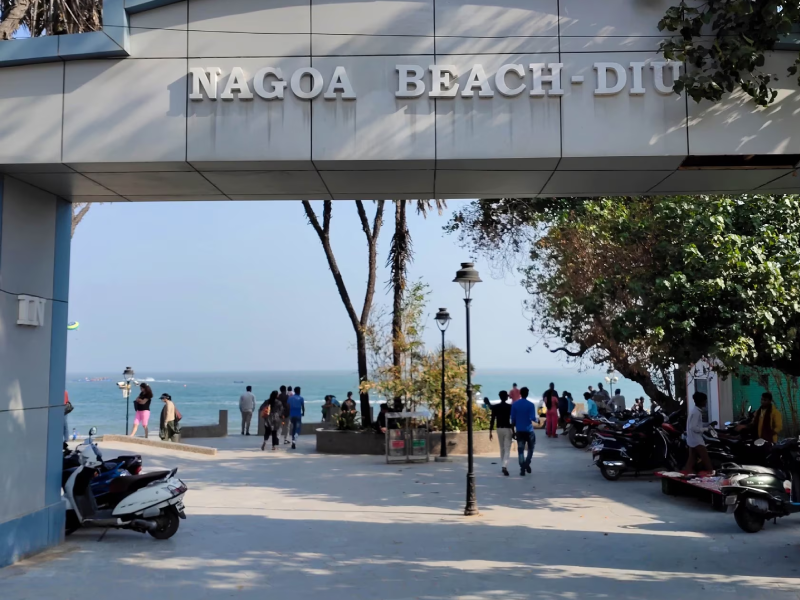 Nagoa Beach is one of the most popular coastal attractions in Gujarat, located near the serene island town of Diu. Known for its unique horseshoe-shaped shoreline and swaying palm trees, Nagoa Beach offers a perfect blend of relaxation and adventure for travelers. The calm and shallow waters make it ideal for swimming, while thrill-seekers can enjoy exciting water sports such as parasailing, jet skiing, and banana boat rides. The beach is also famous for its soft white sand and scenic sunset views, making it a favorite spot for photographers and nature lovers. Visitors can explore nearby attractions, indulge in fresh seafood at local shacks, and enjoy a peaceful coastal vibe away from crowded city life. Nagoa Beach is a must-visit destination for those seeking a refreshing beach getaway in Gujarat with scenic beauty, adventure activities, and a relaxing atmosphere.