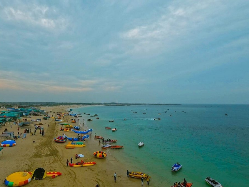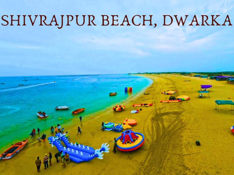Shivrajpur Beach, located near the sacred city of Dwarka on the western coast of Gujarat, is one of the cleanest and most scenic beaches in India and proudly holds the prestigious Blue Flag certification. Situated about 12 km from Dwarka and around 450 km from Ahmedabad, this pristine Arabian Sea shoreline is known for its crystal-clear water, soft white sand, and well-maintained tourist facilities. The beach offers a perfect blend of natural beauty and relaxation, making it a must-visit attraction for travelers exploring Dwarka tourism and Gujarat coastal destinations. Visitors can enjoy peaceful sea views, swimming in designated safe zones, beach walks, photography, and exciting water sports such as jet skiing, parasailing, and boating. Well-developed amenities including changing rooms, eco-friendly pathways, seating areas, lifeguard services, and food kiosks ensure a comfortable experience for families and tourists. The calm atmosphere and spectacular sunset views make Shivrajpur Beach an ideal getaway after visiting the famous Dwarkadhish Temple.