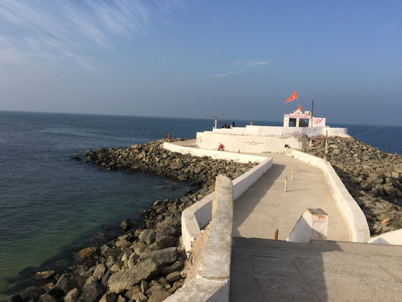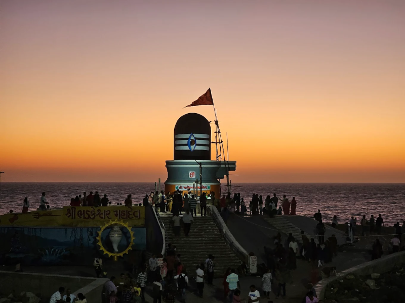 Perched dramatically on a small hill surrounded by the Arabian Sea, the Bhadkeshwar Mahadev Temple is one of the most sacred and scenic Shiva temples in Dwarka, attracting thousands of devotees and tourists visiting Gujarat. Located just about 2 km from the famous Dwarkadhish Temple, this ancient temple dedicated to Lord Shiva stands uniquely on a rocky island that gets partially surrounded by seawater during high tide, creating a breathtaking natural spectacle. Believed to be centuries old, the temple offers a peaceful spiritual ambiance and mesmerizing sunset views over the Arabian Sea, making it a must-visit destination for pilgrims and photographers alike. Devotees especially gather here during Mahashivratri, when the temple witnesses grand celebrations and special prayers dedicated to Lord Shiva. The serene coastal setting, combined with the temple?s religious significance, makes Bhadkeshwar Mahadev Temple a prominent spiritual landmark in Dwarka and an essential stop for travelers exploring the sacred Char Dham circuit and Gujarat?s rich cultural heritage.