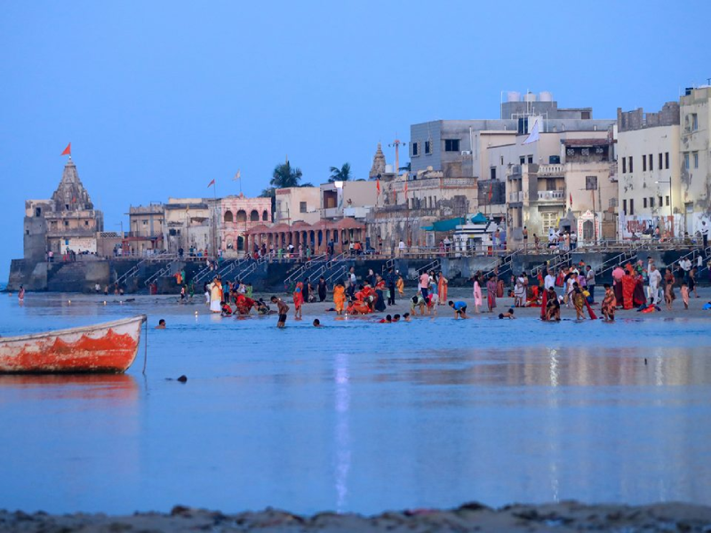 Gomti Ghat in Dwarka is one of the most sacred and scenic riverfronts in Gujarat, attracting thousands of pilgrims and travelers throughout the year. Situated at the point where the holy Gomti River meets the Arabian Sea, this spiritually significant ghat is closely associated with the legendary kingdom of Lord Krishna and forms an important part of the Dwarka pilgrimage circuit. Devotees believe that taking a holy dip in the Gomti River at Gomti Ghat washes away sins and brings spiritual blessings before visiting the famous Dwarkadhish Temple located nearby. The ghat is lined with ancient temples, small shrines, and stone steps that lead down to the calm waters, creating a deeply devotional atmosphere filled with chants, rituals, and offerings. Visitors can also see pilgrims feeding fish, performing pind daan, and participating in traditional aartis during sunrise and sunset. With its blend of mythology, religious importance, and peaceful coastal charm, Gomti Ghat is a must-visit attraction in Dwarka for tourists exploring Gujarat?s rich spiritual heritage and historic pilgrimage.